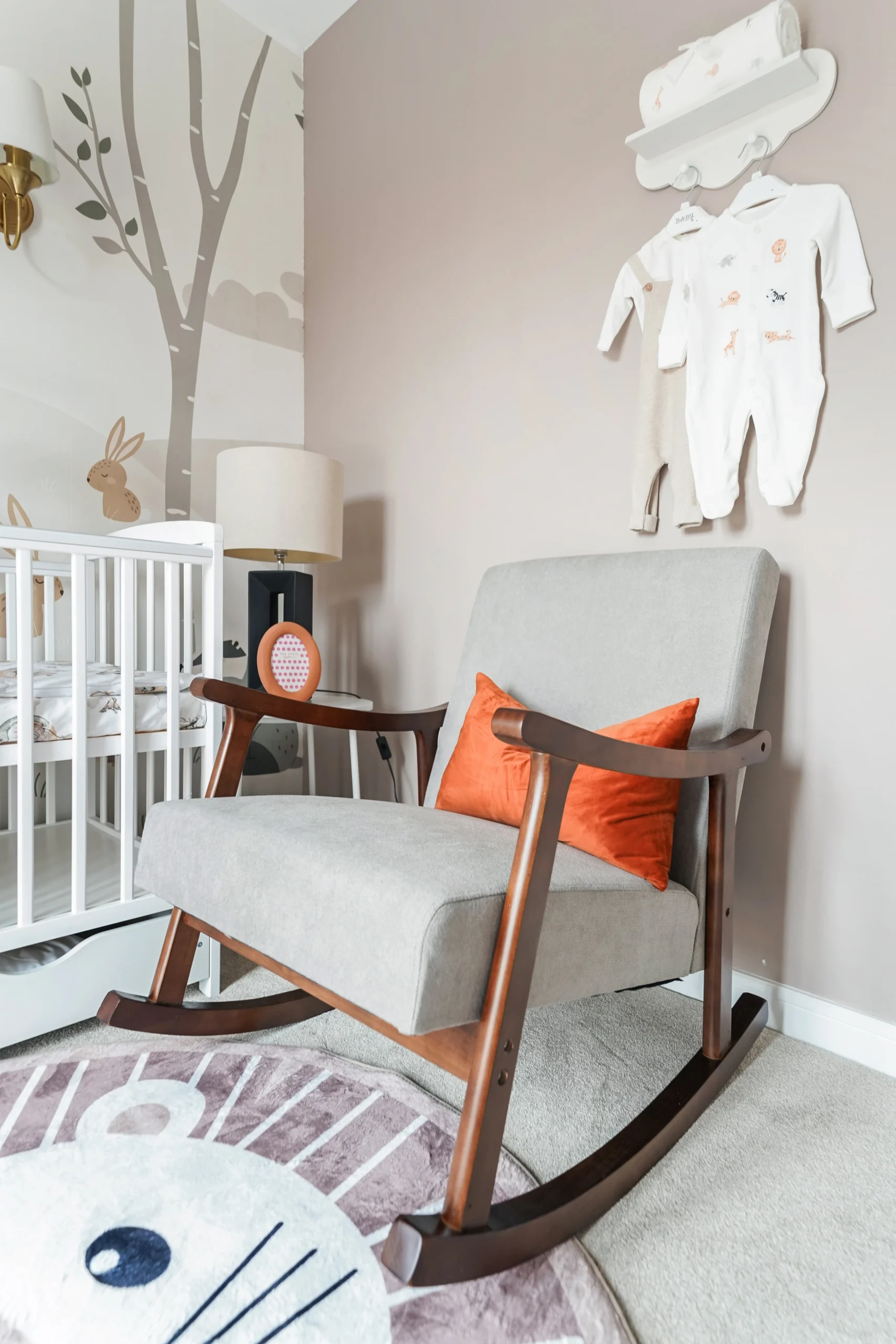 To infuse character and warmth into the space, we introduced statement wallpapers in the primary bedroom, nursery, and living room. The remaining rooms, including the entryway and stairwell, were painted in complementary tones, creating a harmonious flow throughout the home.