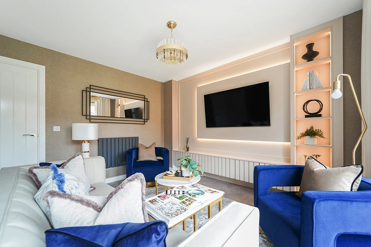We transformed this brand-new 3-bedroom property in Luton into a warm, stylish, and functional family home. With a palette of soft neutral tones, elegant royal blue accents, and carefully curated furnishings, every element was designed to reflect the clients’ lifestyle and vision. From sleek designer radiators to a bespoke TV media wall, the home was elevated with thoughtful details that blended style and practicality, creating serene, welcoming spaces ready for a growing family.